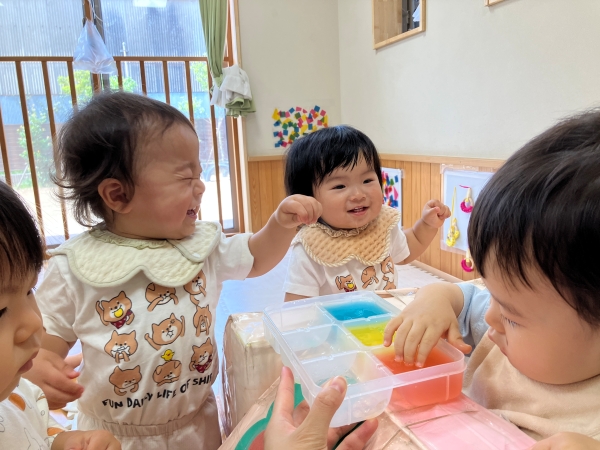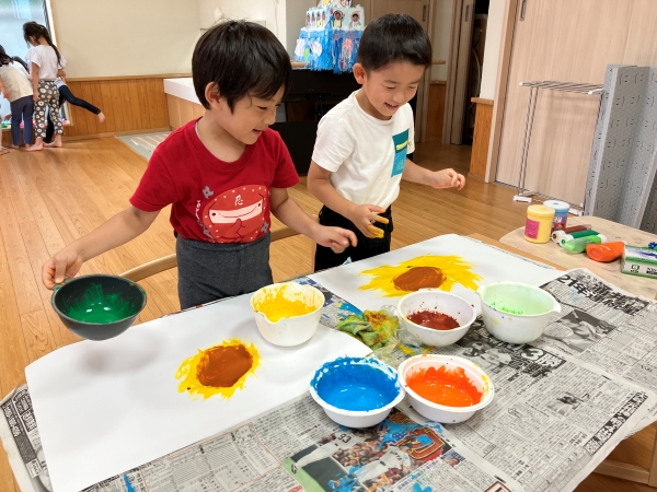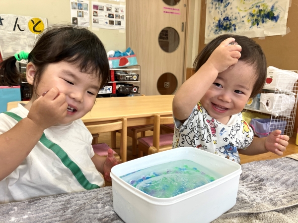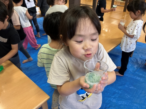この夏も緑が丘のエーワンキッズは、水遊び、泥遊び、感触遊び、絵の具遊び、夏祭りもすいかわりも経験して、一段と逞しくなりました😊